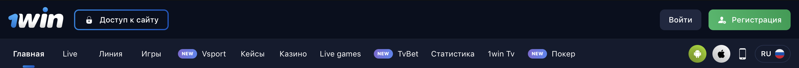 • Главная. Основная страница ресурса, на которой расположены линии, коэффициенты, топовые события, онлайн-казино